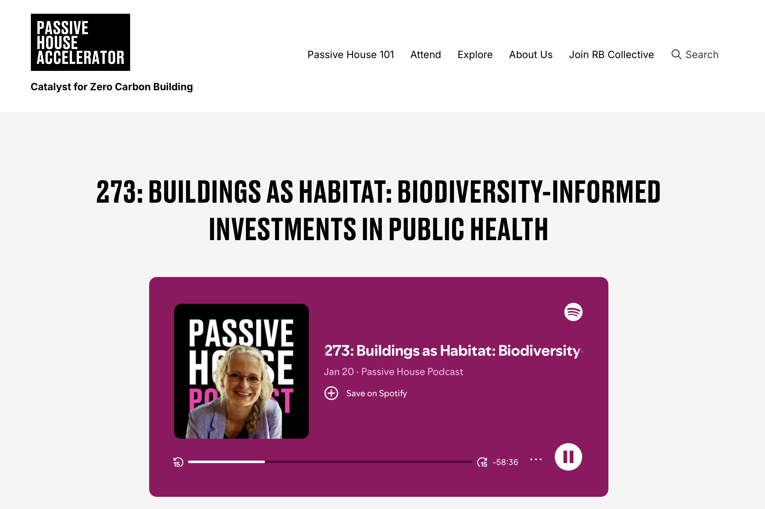 We will take the concept of resilience into biophilic urbanism, the re-imagining of cities as bio-diverse habitat. We will explore the building blocks for biophilic green and blue infrastructure and their measurable physiological benefits for community building, school performance, crime prevention, and equity.